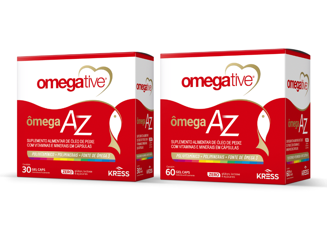 Omegative® AZ é um suplemento vitamínico e mineral desenvolvido para suprir as deficiências de nutrientes que a dieta inadequada, estresse, exercícios físicos intensos e outras condições biológicas podem causar. Aliado aos benefícios do ômega 3, auxilia na concentração, na performance do cérebro e no funcionamento adequado do sistema imunológico. Também auxilia na manutenção de níveis saudáveis de triglicerídeos.
